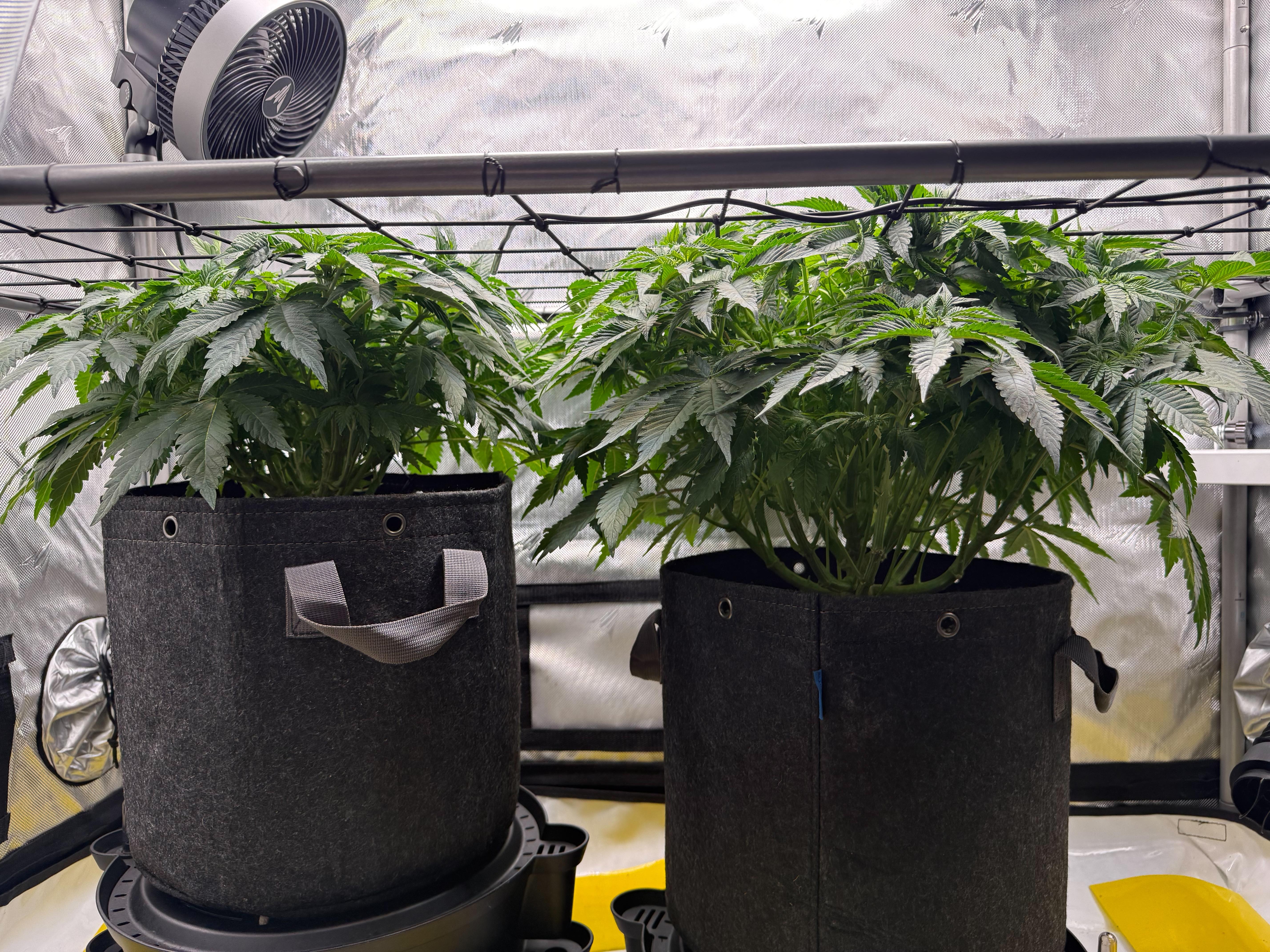 i am currently on day 65 from sprout. I had to make some adjustments as my left plant just couldn’t seem to catch up in growth as the right plant. My main struggle right now is my nutrients vs water with calmag only schedule. I have been using ai chats to help me mix and schedule my feeds and it seems to keep my plants healthy but I’m just not sure how to dial it into a scheduledlewis01